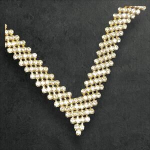 Vintage Rhinestone V Statement Necklace Gold Tone 16"