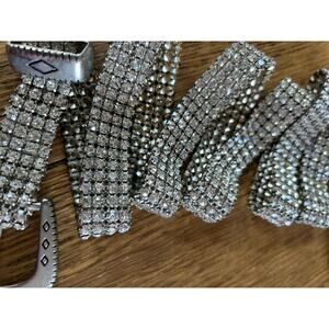 Vintage Rhinestone Western Belt 46” Length Bling Pop New Years Eve Heavy Buckle