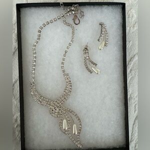 Vintage Rhinestone and Pearl Necklace and Earrings set