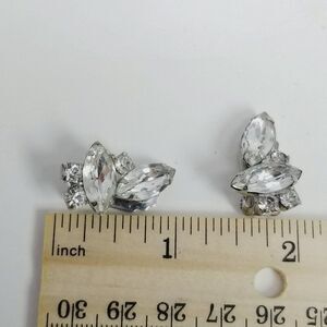 Vintage Rhinestone Cluster Clip On Earrings, Marquise Shape Prong Set, Estate