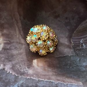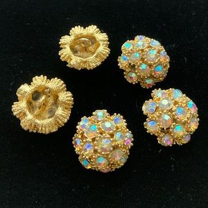Offering a set of (5) vintage .75β rhinestone buttons set on a gold metal frame with a loop fastener on the back. Each button has approximately (15) aurora borealis rhinestones. These are beautiful buttons in great condition, that would enhance the look of any article of clothing. Just use your imagination! π π©ππ....