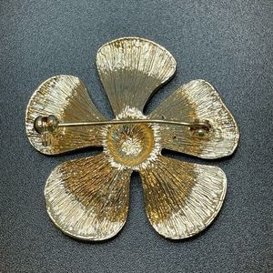 Vintage Gold Tone Rhinestone Encrusted Flower Brooch Pin