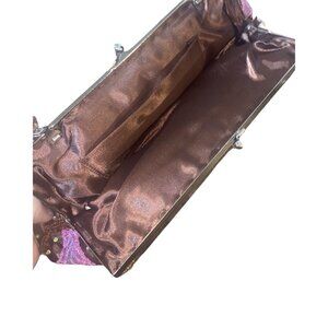 This vintage clutch purse exudes elegance and sophistication. Adorned with sparkling rhinestones, it is a perfect accessory for a special evening event. The purse features a timeless design that complements any outfit, making it a versatile addition to your collection.