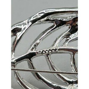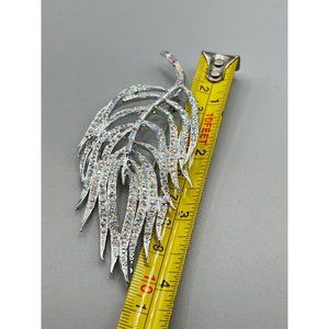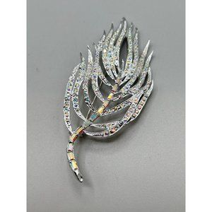 Vintage Rhinestones Feather Pin Brooch Silver Tone Aurora Borealis Oversized Pin