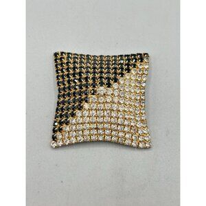Vintage Rhinestones Pin Brooch Black Clear Prong Set Pyramid Shaped Square Pin
