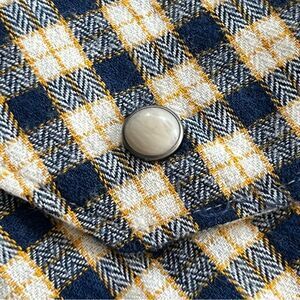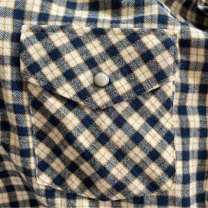 TAGS: VINTAGE, WESTERN, COUNTRY, SOUTHWEST, PLAID, CREAM, TAN, NAVY, YELLOW, PEARL BUTTONS, COTTON, DEADSTOCK, SEARS,