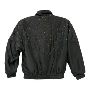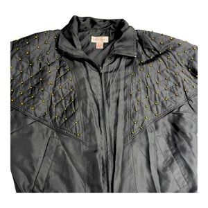 Vintage Rhoda Lynne Black Silk Gold Beaded Track Jacket Jogger Warmup size M