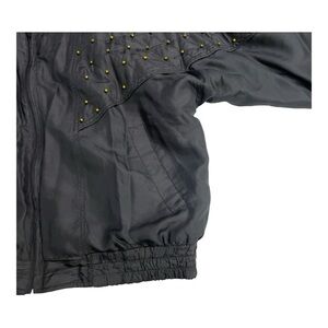 vintage black silk gold beqds jogger jacket elastic waist side pockets shoulder pads