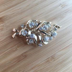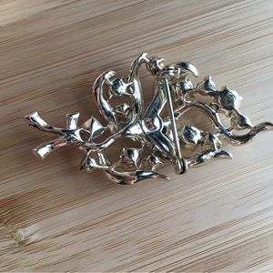 Vintage Rhodium Plated Rhinestone Ribbon Fern Brooch