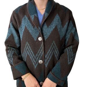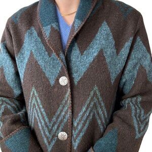 Vintage Rhonda Stark Brown Blue Aztec Western Wool Blend Ranch Chore Trench Coat