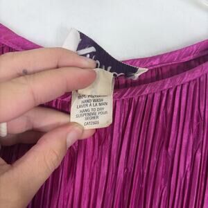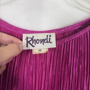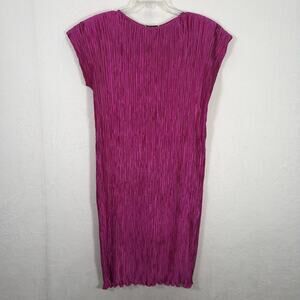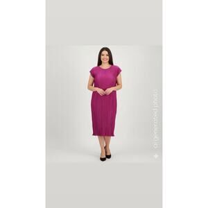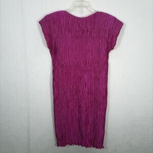 Vintage Rhondi 1980's Pink Fuschia Crinkle Short Sleeve Midi Dress Medium Chrty