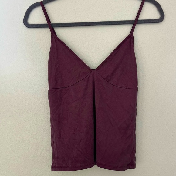 Vintage, dark purple/ burgundy color with rubber detailing. Stretchy material, fits like a size small.