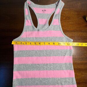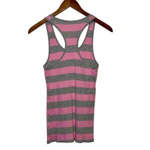 Vintage Ribbed Pink Striped Y2K Longer Length Tank Top Preppy Stretch Size XS