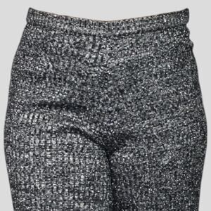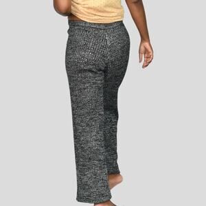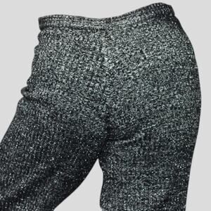 Vintage Ribbed Sweater Knit Pants Black Silver Metallic Elastic Wide Leg Small