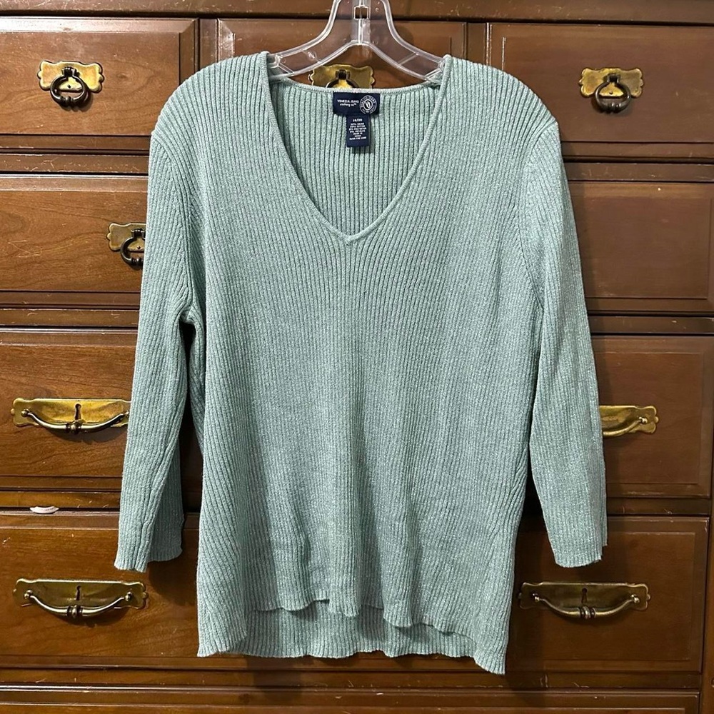Vintage Venezia Jeans Light Blue Sparkly V-neck Ribbed Relaxed Fit