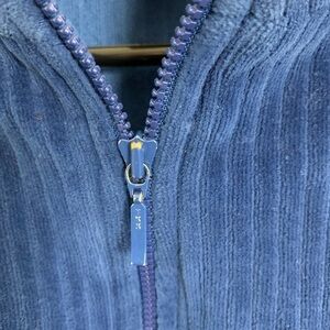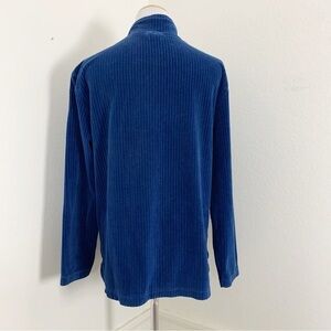 Vintage Ribbed Velour Blue 3/4 Zip Long Sleeve Shirt Sz S Mock Neck