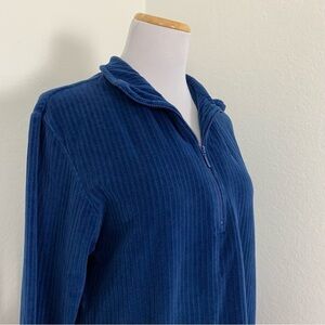 Ribbed Velour 3/4 Zip Long Sleeve Pullover Top Size Small