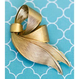 Vintage Ribbon Elven Leaves Gold Tone Brooch by Coro