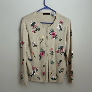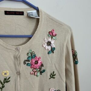 EUC vintage floral embroidered cardigan sweater. Size XS. This sweater is a tan color with ribbon floral embroidery. No stains or flaws!