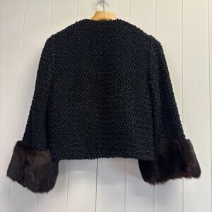 Vintage Ribbon Fur Cuff Old Hollywood Glam Evening Jacket Size M Retro 60s Chic
