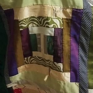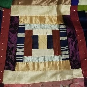 Hello, it’s called a crazy quilt. Might help to add that. Many silk and satin fabrics are usually in them. CM