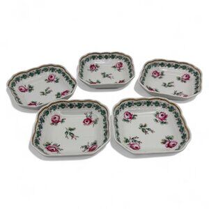 Vintage Richard Ginori Pink Rose Small Square Plates Set Of 5 Italian Porcelain