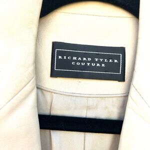 Vintage Richard Tyler Couture Leather Blazer USA Silk 8 Cream Jacket