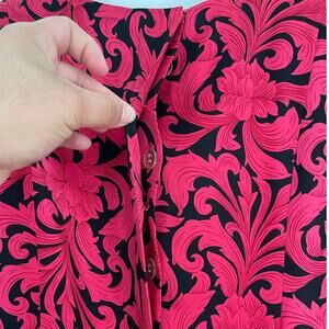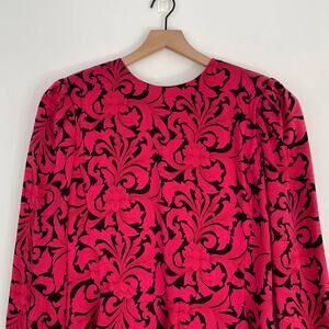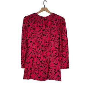 Vintage Richard Warren 100% Silk Red and Black Floral Peplum Blouse Size 10