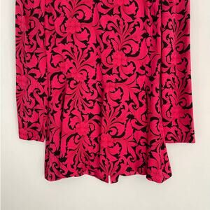 Beautiful red and paisley print silk blouse by Richard Warren. In a peplum style perfect to accentuate your curves.