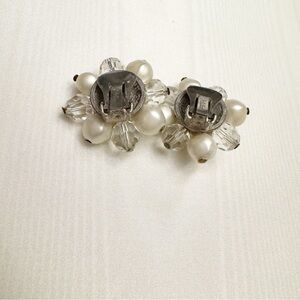 Vintage Richelieu Faux Pearl & Clear Crystal Clip On Earrings Silver Tone