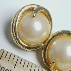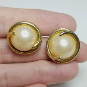 Vintage Richelieu Faux Pearl and Gold Tone Stud Earrings, Signed Estate