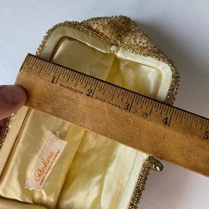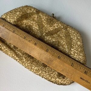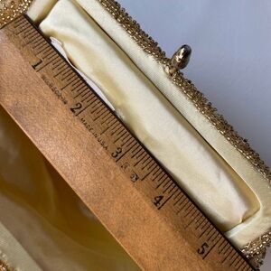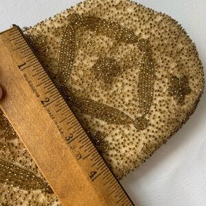 Beautiful condition hand beaded clutch in a champagne gold color. Satin interior.