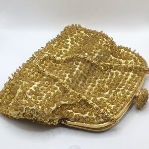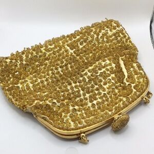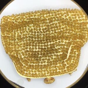 Vintage Richere Sequin Bead Gold Beaded Clutch Small Evening Bag