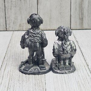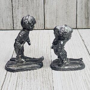 Vintage Ricker Bartlett Pewter Figurines Boy and Girl Skiing 1980's SET