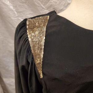 Vintage Ricki Lang for Nuit Women’s Black Long Sleeve Dress with Beaded Shoulders