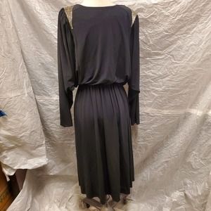 VINTAGE RICKI LANG FOR NUIT WOMEN'S BLACK LONG SLEEVE DRESS WITH BEADED SHOULDERS