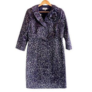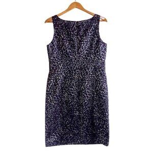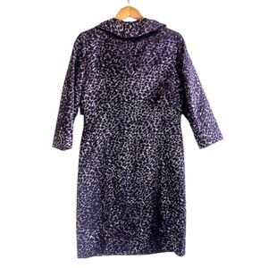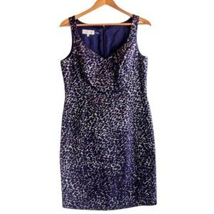 Stunning fully-lined 2-piece deep purple and silver metallic sleeveless sheath dress with matching bolero jacket from Rickie Freeman for Teri Jon.