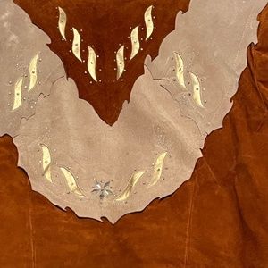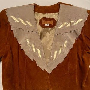 It says size 12 on tag I am 4’11 100 pounds it fits me pretty good so definitely a size small It’s from the 80’s from designer Ricky Nell it’s suede.