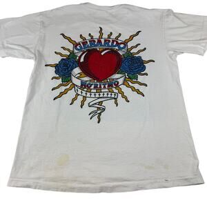 Own a piece of music history with this vintage Rico Suave Gerardo t-shirt! This classic tee is from 1991 and features a Hanes tag. It's a size medium and ready to add some retro flair to your wardrobe.