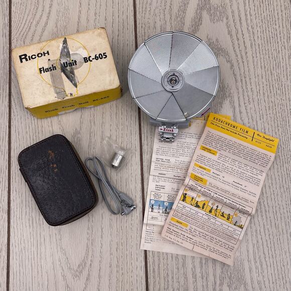 Vintage Ricoh Riken Camera Flash Unit BC-605 Bulb Cord Zippered Storage Case Box