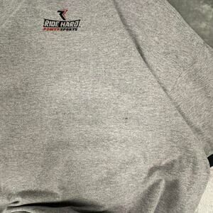 Vintage Y2K Ride Hard Power Sports Grey & Black Two-toned Big Logo Print Graphic T-shirt Size 2XL