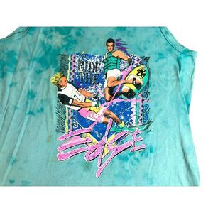 Vintage Ride The Edge Shirt Adult Medium Blue Tank Single Stitch Surfboard 80s