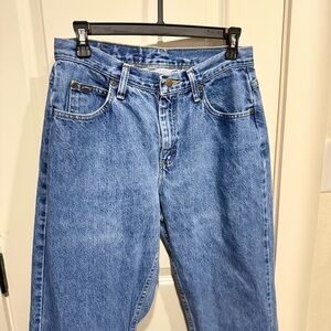 Vintage Riders by Lee Mom Jeans, straight-leg fit, tag says 8 Long, *as pictured there are two spots that are worn on inside of seam, not holes just worn :) and a small bleach spot on back of leg near ankle