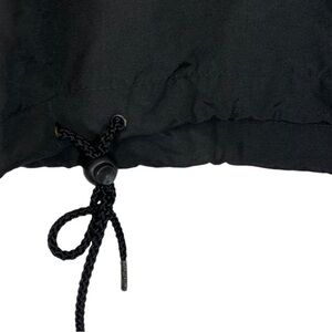Features: Nylon fabric in a classic 90s retro pattern. Front pouch pocket with velcro closure. Zip henley neckline. Drawstring waist line. Pull over.