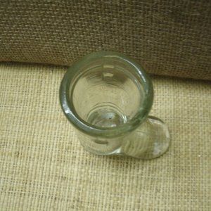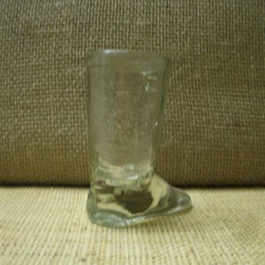Vintage riding boot shot glass from 1960s. Clear glass. 3 1/4 inches high, opening diameter 1 5/8 inches, 1 1/8 inches wide. Good condition, no chips or cracks. Great for collecting or using. Great for horse lovers and equestrian sports fans!