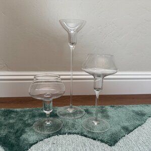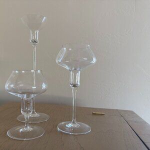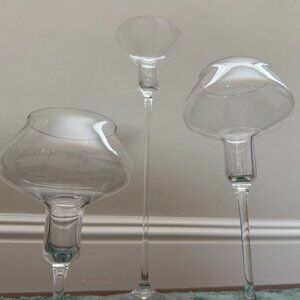 From a Lafayette Estate, this offer includes three (3) vintage Riedel candle stick holders of different yet complimentary heights. The glass is clear with delicate round holder and round base.