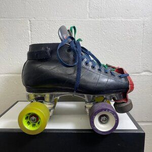 Vintage Riedell 595 Roller Skates Black Leather Lace up Men's Size 5 Made USA