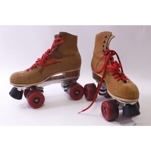 Vintage Riedell, Size 8 Womens, Suede Roller Skates, Brown, Red Wheels,