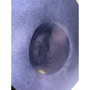Vintage Rikes Navy Blue Wide Brim Felt Hat With Ribbon Accent England Made