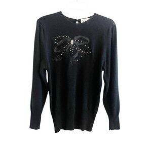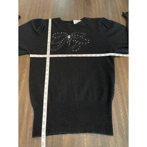 Vintage Rimini Beaded Bow Sweater Small Black Lambswool Angora 80s 90s Glam